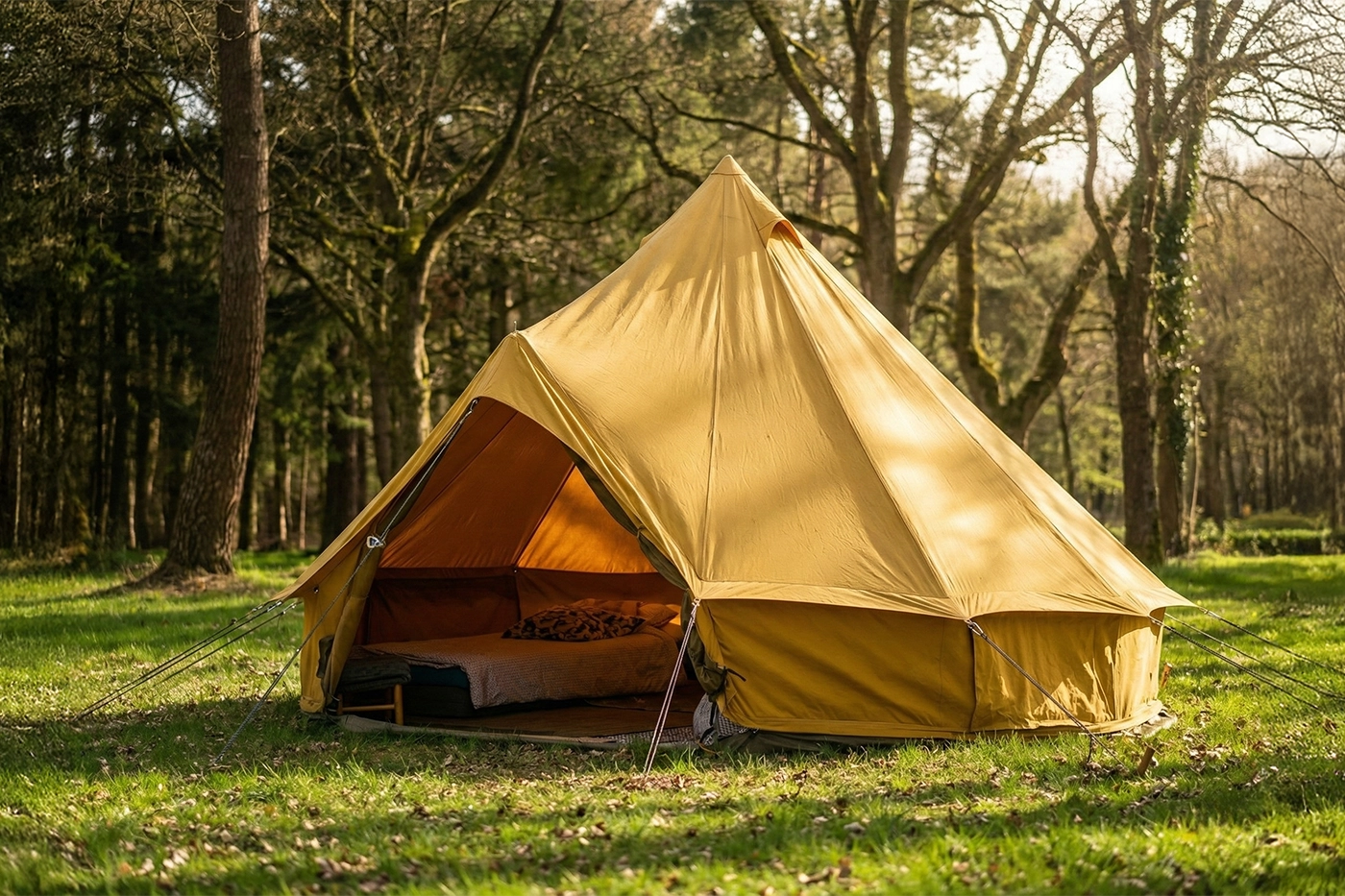 Une tente médiévale spacieuse et confortable, idéale pour un séjour en immersion totale dans la nature. Son intérieur chaleureux et son cadre forestier en font un hébergement parfait pour profiter de Brocéliande en famille ou entre amis.