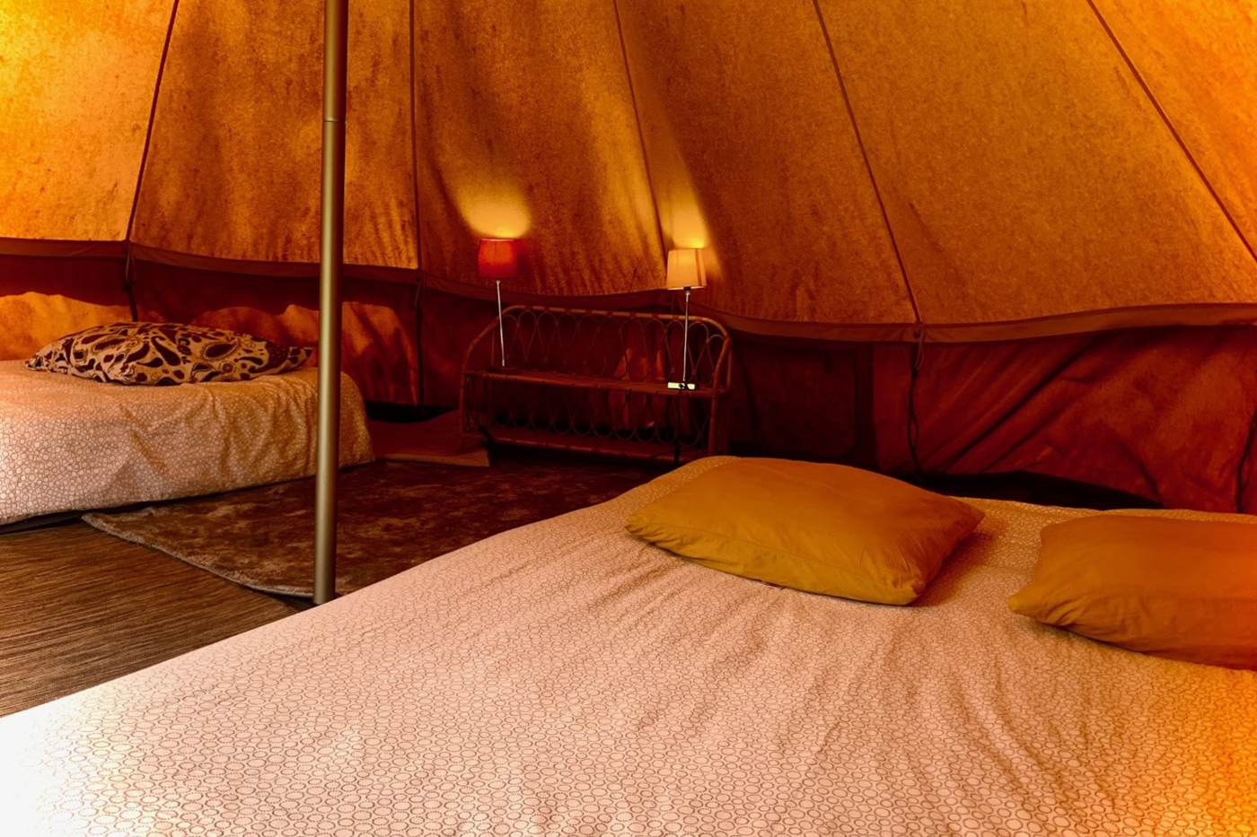 Une tente élégante et cosy, parfaite pour une escapade reposante en couple ou en petite famille. Son intérieur simple et chaleureux offre un vrai retour à l’essentiel au cœur de Brocéliande.