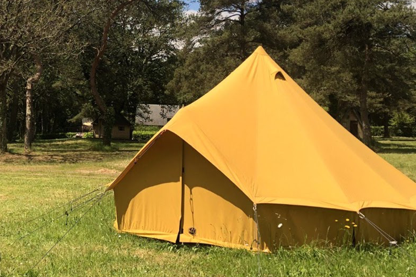 Une grande tente médiévale lumineuse, pensée pour un accueil confortable et atypique. Parfaite pour les familles, elle offre un espace douillet et une atmosphère paisible au plus près de la forêt.